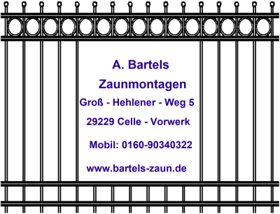 Bartels-Zaun Andreas Bartels Groß-Hehlener-Weg 5 29229 Celle, Vorwerk E-Mail: info@bartels-zaun.de Wir verwenden Cookies, die lediglich zu Statistikzwecken, zur